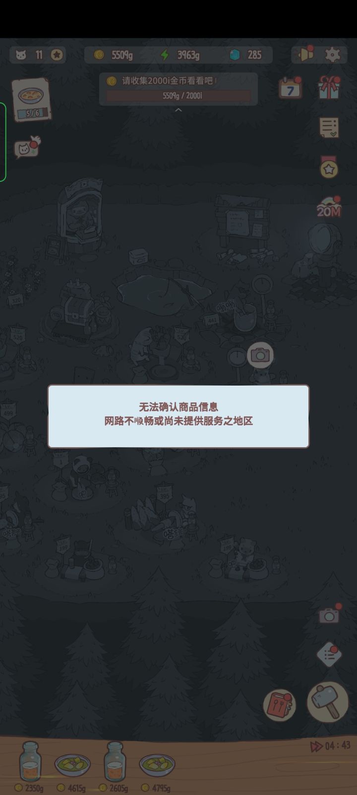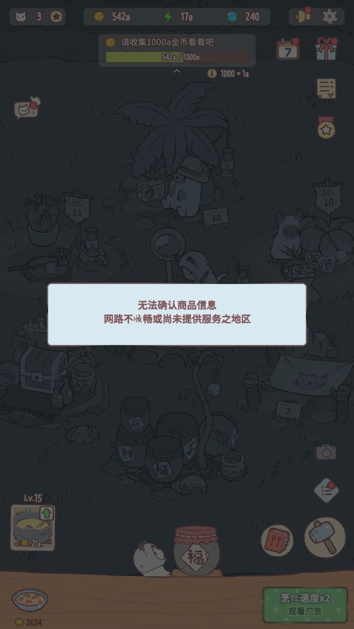 昨天一打开猫汤出问题了,不管是WiFi还是流量都显示没有网络,没有离线奖励,不能钓鱼不能夹娃娃,也没有热气球了,这样的情况该怎么办呀?