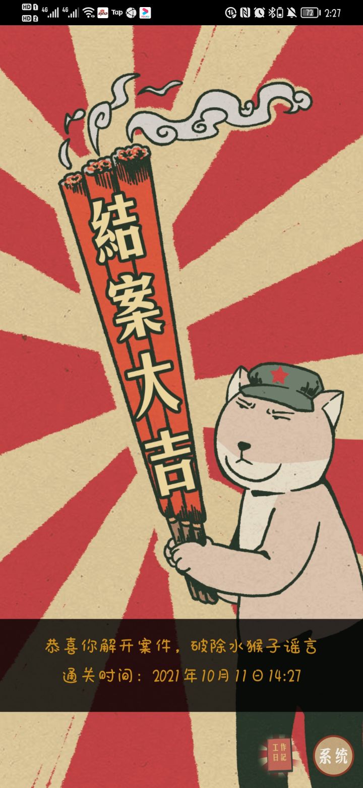 结案啦,跳舞的狐主任逗死我了😂总体挺好玩的,只要按部就班跟着剧情走案子挺容易就能破的😉