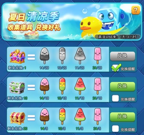 夏日清凉季活动还有一天十四小时就结束啦!还没有把雪糕道具兑换的小伙伴们记得兑换奖品哦!#欢乐对决#游戏推荐