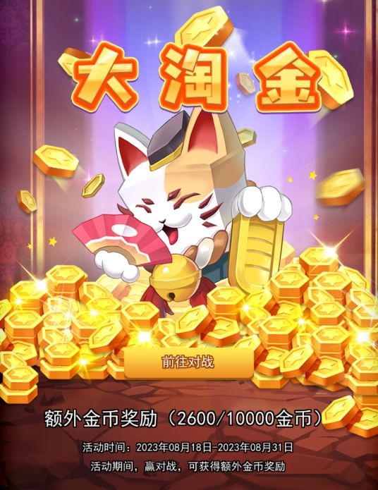 海量金币等你来拿,快来参与淘金大战吧!8月18日至8月31日,活动期间,赢对战,可以获得额外金币奖励哦!#欢乐对决#游戏讨论#游戏福利