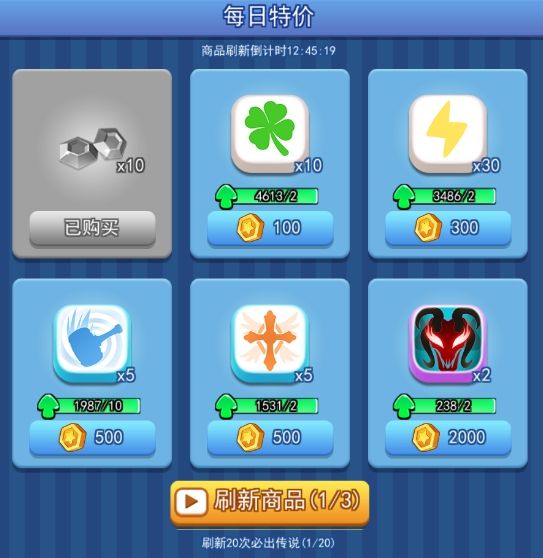 在【每日特价】中,刷新20次必出传说,小伙伴们记得每天去刷新三次哦!