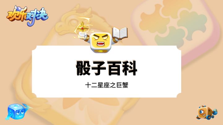 哈喽各位朋友们早上晚上下午好,欢迎来到【骰子百科】本百科内容为大家介绍全体骰子,点击分栏【骰子百科】查看更多!今天为大家介绍的是十二星座骰子中的巨蟹骰子巨蟹骰子是一个攻击性质的骰子,它具有群体攻击的功能。【能力】:巨蟹骰子每次攻击可获得一个能量印记,能量印记可提升攻击力,能量印记达到30个时会引爆对所有敌人造成多倍伤害。巨蟹骰子的点数越高,可获得能量印记的频率就越高。【科技提升】:巨