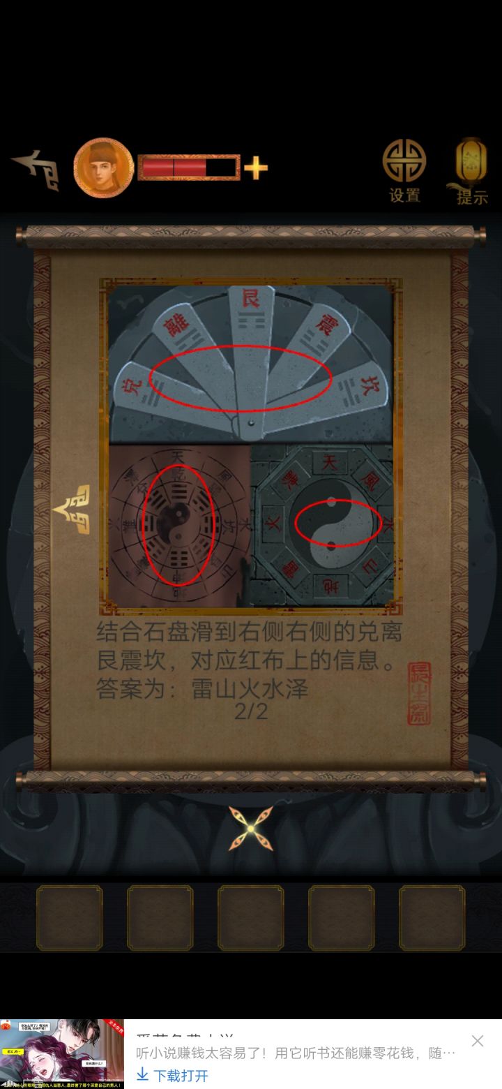 大多数地方好解,第五章的时候,有个奇奇怪怪的bug。在那个石碑那里,随便点点就过去了,结果我忘了庙里还有个铜镜要拿,到了破解大门的时候卡壳了,去看攻略才发现,我没拿铜镜。不过,剧情,cv什么的都算得上可以,人物设定方面,还是不太丰满。像佩兰吧,有些行为,只是为了推动剧情,可是旁观来看,就是妥妥坑爹。后面剧情线也很好猜,从一开始发现“松”字玉佩时,就灵光一现了,制作组给的线索太多了。希望继续加