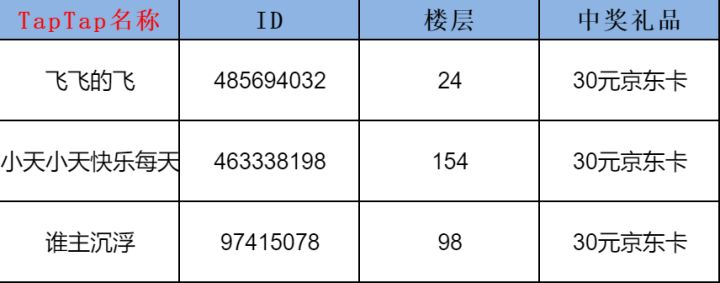 大家好呀,之前发布的父亲节福利活动已结束,事不宜迟,马上来公布中奖名单吧!活动原帖:以下为世上英雄父亲节福利活动TapTap中奖名单及抽奖凭证:恭喜以上5位玩家!!!玩家可以在京东卡和steam点卡之间二选一,但如果选择了steam点卡,会给到换算价格基本相等或相近的其他国家货币点卡。(国内可以正常兑换使用)领奖方式:请中奖的玩家请添加《世上英雄》官方群860519559,找管理员“神