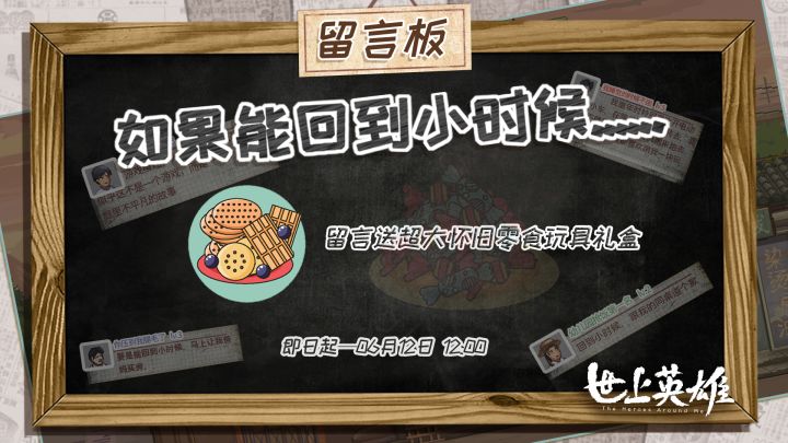 大家下午好呀,在故事征集活动发布后,大家非常积极地参加了活动,说了很多小时候的故事,凌编看了之后也是感触颇多,曾经童年时发生的事情仿佛历历在目,非常向往。关于《世上英雄》的调查问卷,我们共收到了一千多份大家的回答,非常感谢大家的支持和参与,现在就和故事征集活动一同开奖吧!故事征集活动帖:调查问卷(已关闭):以下为故事征集活动的TapTap中奖名单及抽奖凭证:恭喜以上6位幸运的玩家!!!领