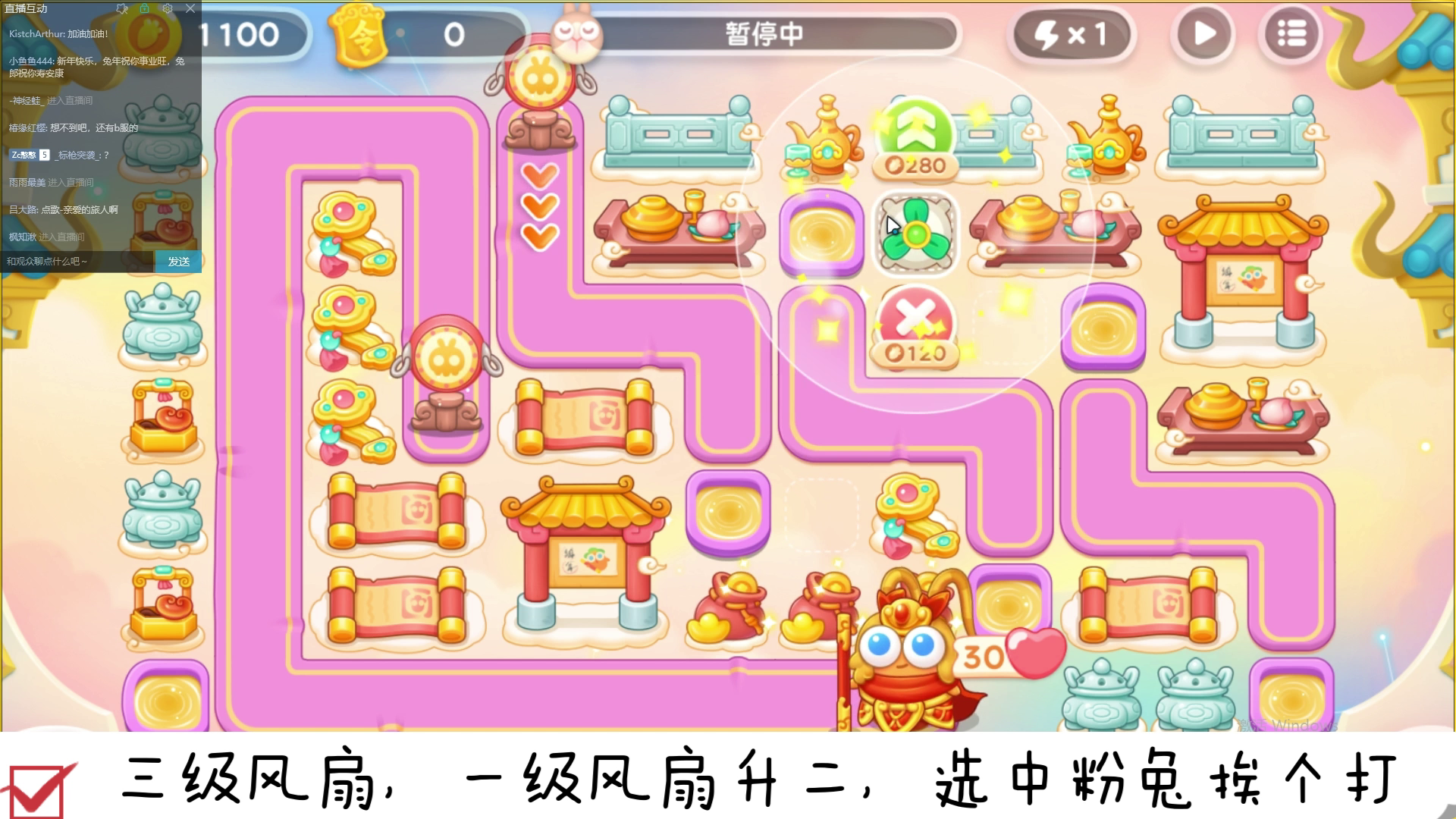 小心粉兔!小心粉兔!!小心粉兔哦!!!建议提前锁定第一波刚刚出来的粉兔。大冰兔先打上面,然后清理干净冰块后再把下面出来的大冰兔打了,一起打掉绝对会让你记忆深刻的哦……