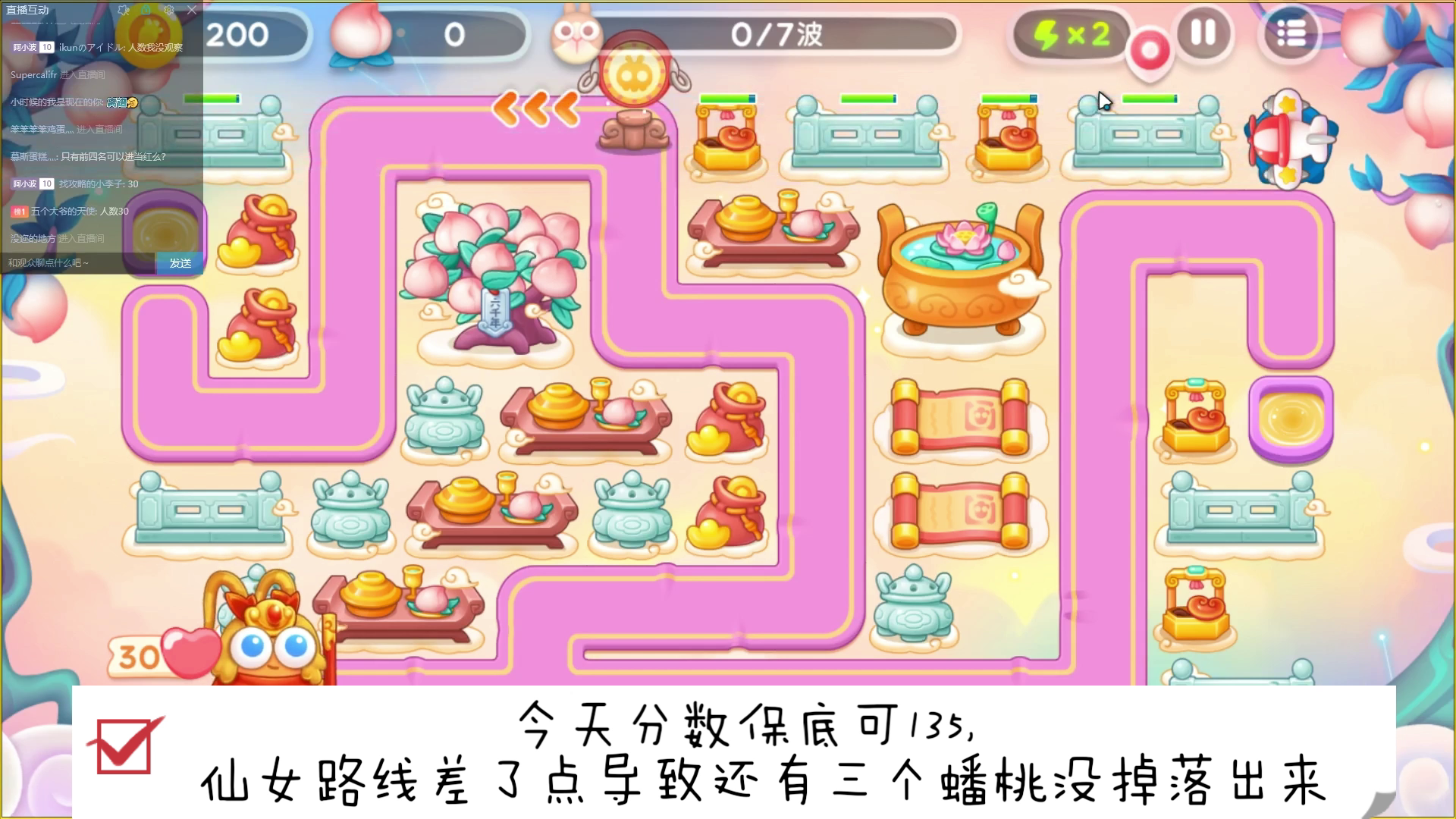 由于我在地图右侧的炮塔全部卖掉了,所以我等到疯疯兔走到地图右侧的时候,再次在地图右侧建几座炮塔。但是,疯疯兔吃掉萝卜阿波以后,我感觉到打这关时已经后悔了。