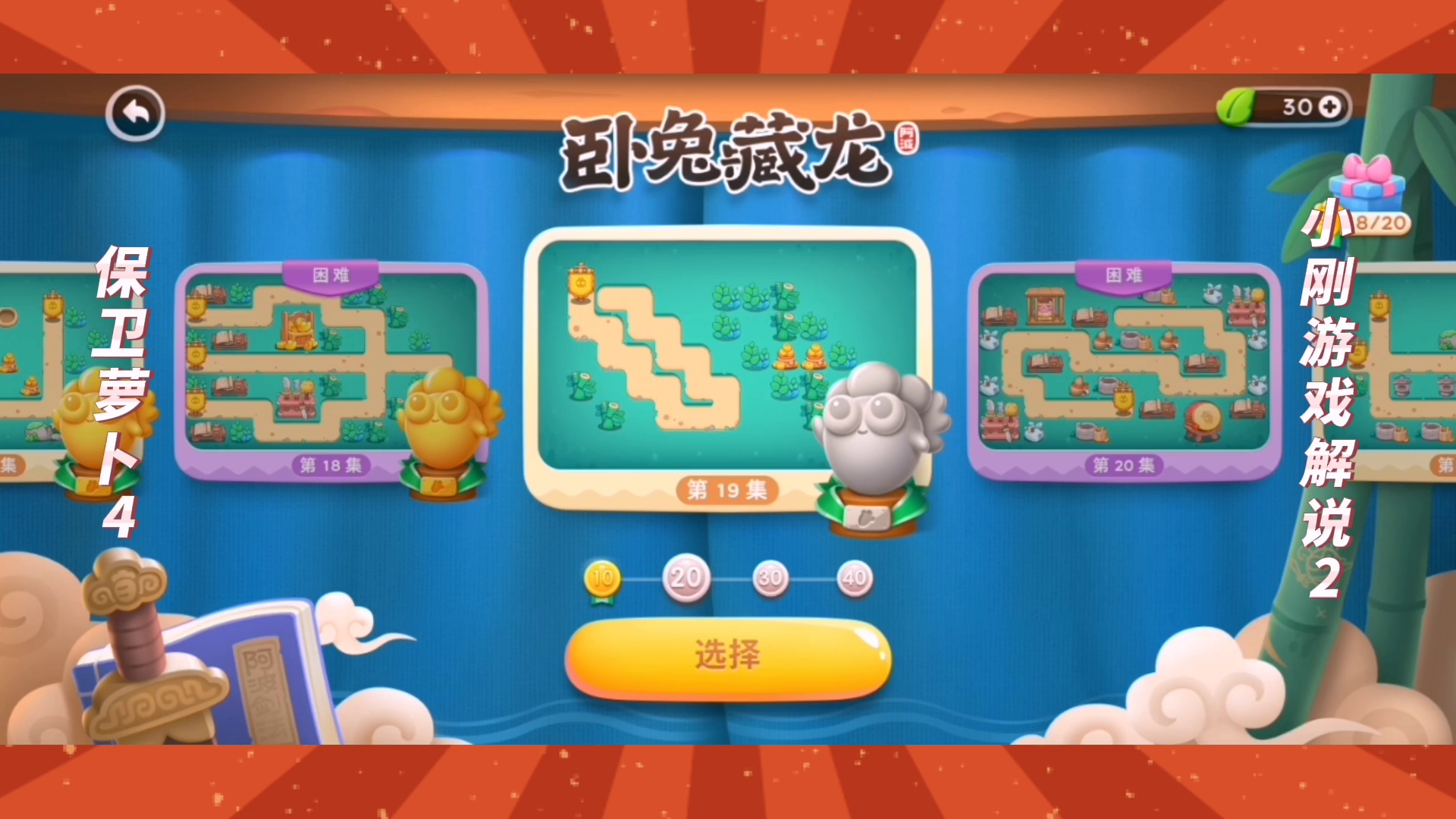 保卫萝卜4:卧兔藏龙第20关(1),居然有只疯疯兔把萝卜阿波吃掉了