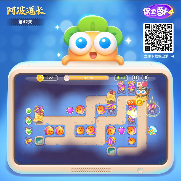 保卫萝卜4:卧兔藏龙第19关(2),我第二次打这关时,终于获得一块金萝卜奖杯。