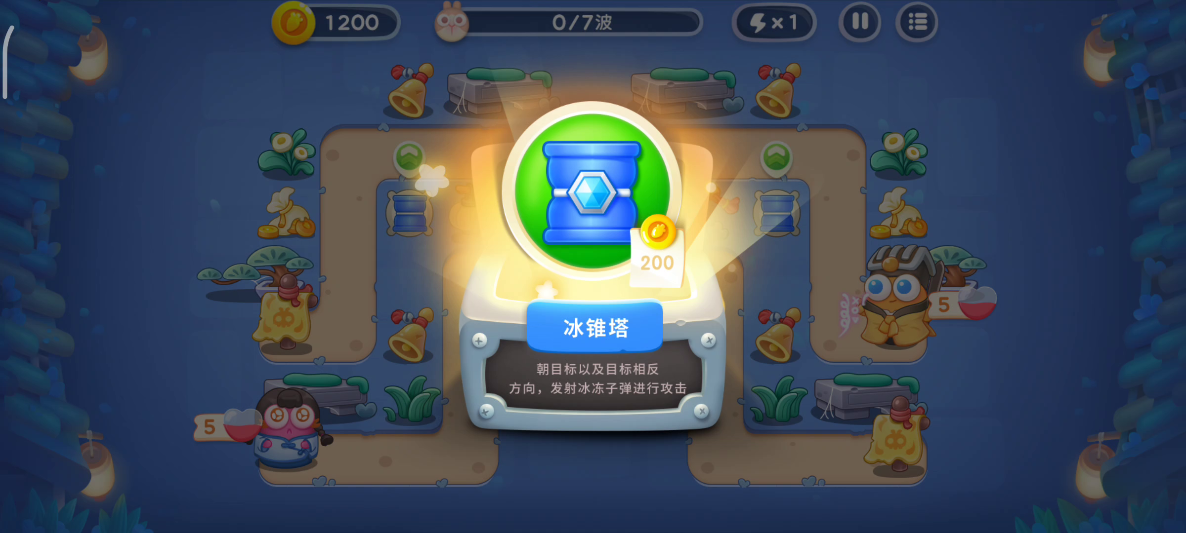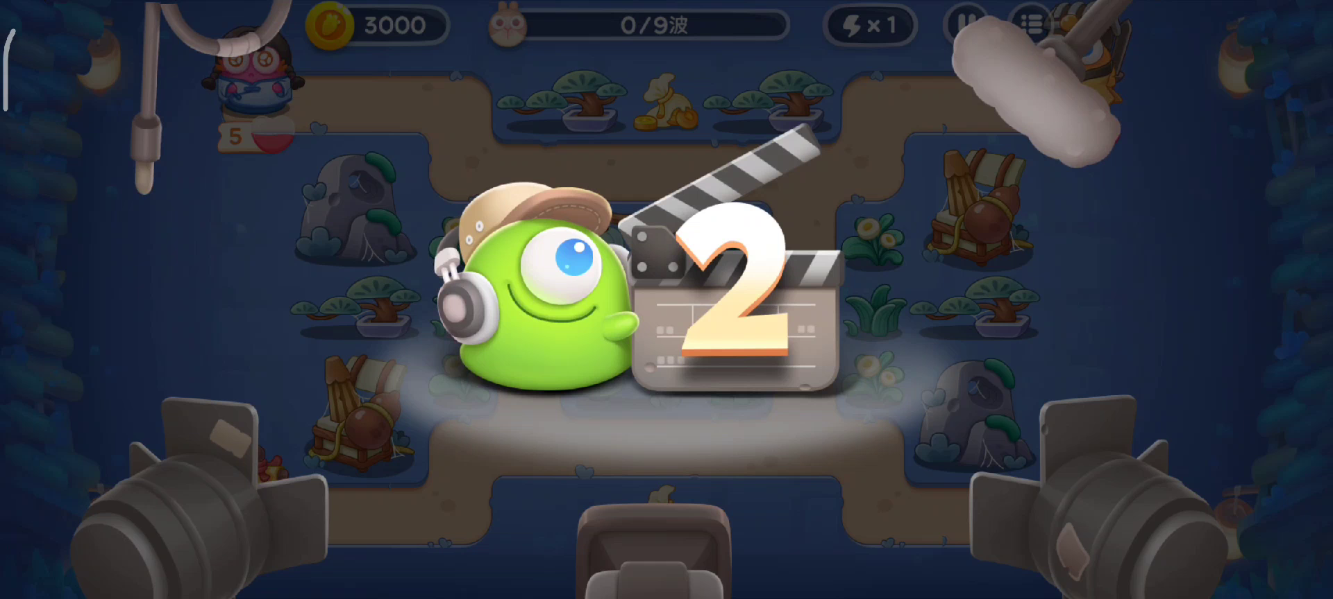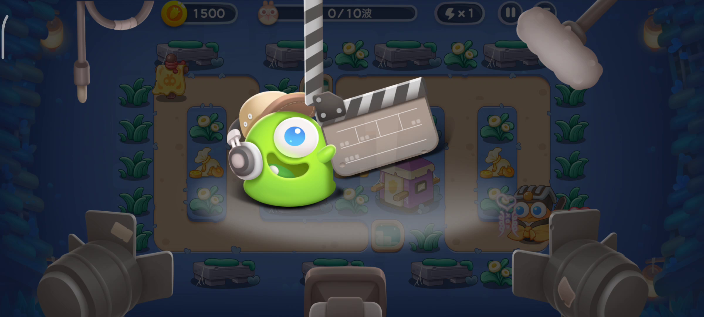 那个发射果冻的兔子血条太厚了,我打了好几次都被他啃了萝卜! 这次紧张兮兮的盯着他,终于金萝卜了,但是没全清,泪目! 第三波开始有兔子不走下边横着的路线,而是走上边,所以要好好安排火力 然后第五波开始有果冻兔子,泪目