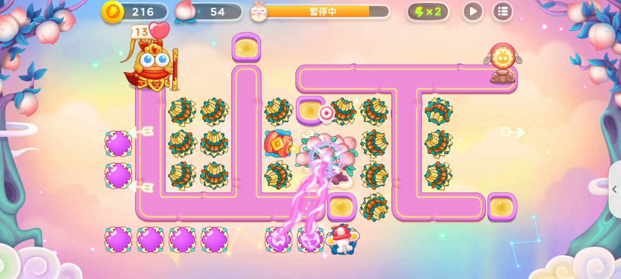 打到第五次打的全清,两次残血过,难度很大,比较看脸,开局需要控血放残血怪,在最后面再造一个塔收怪,抽空就拆建筑,造塔没有固定的位置和顺序,就是看哪里刷了钱袋子就往跟前造,优先造第二个水池里右边一排,同时还要兼顾拐角及左路兔子及时锁头,因为攻击范围太小,所以只能靠数量,只要脸不是特别黑五次能过两三次吧