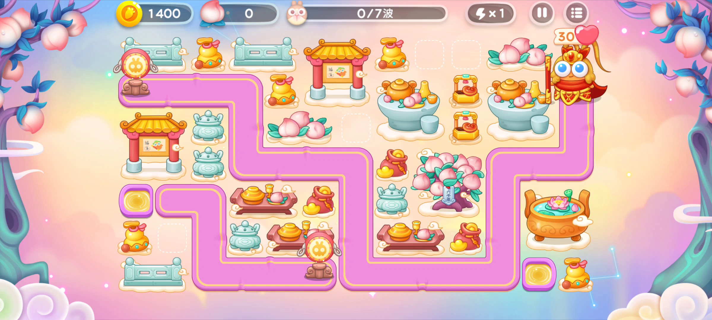 弓箭和火瓶子配合。前期多打蟠桃树。请选择性忘记战略的不完美。