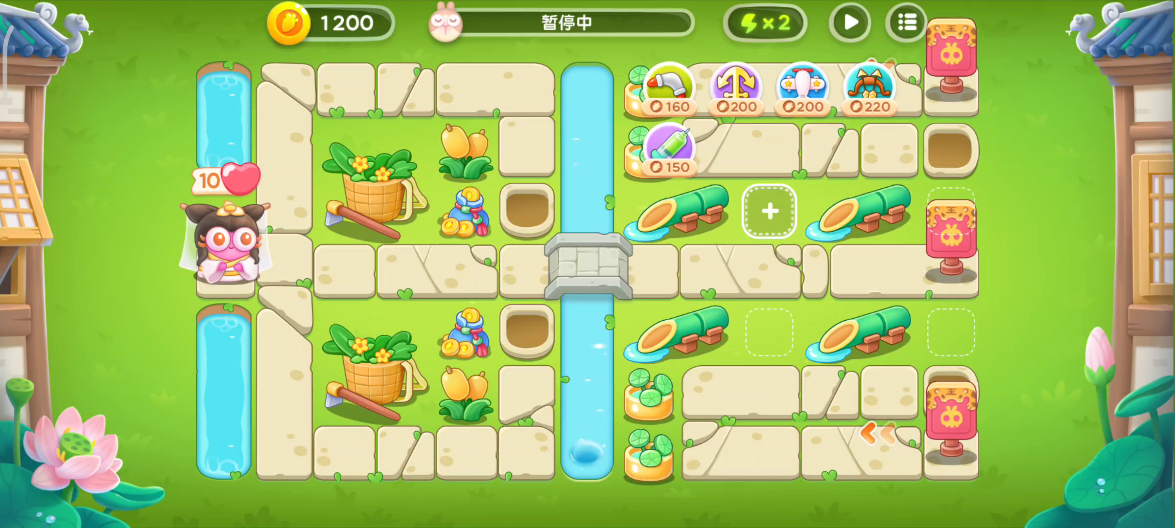 如题, 开局也可以弄两个两级塔不用像我这样也行,我这种感觉容错率也不高,很容易漏一丝怪跑出去。 想简单一点就记得把冰兔卡在最边上打了,这样就不存在冰冻效果了也就擦擦屏幕就行。