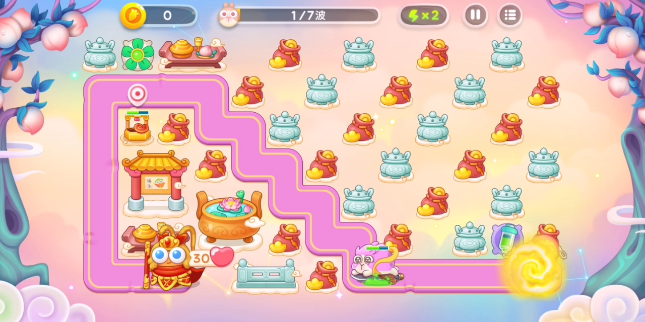 这关真的太极限了,仅供大家参考 关键是要在那个风火轮一样的兔子停下的地方建炮台