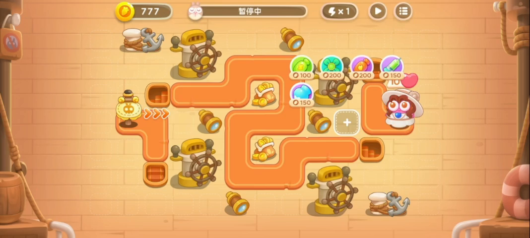 ★通关要点:前期利用瓶子炮清理道具,金钱充足之后在左侧补充火力即可,当然别忘了右侧也补充一下。 ★本关难点:本关怪物左侧密集,但切忌把火力全集中在左侧,后期会有很多快速怪,记得及时拆东墙补西墙,必要的时候可手点。如果金钱足够充足也可考虑在右侧补充减速塔,这样可以避免快速怪偷家。