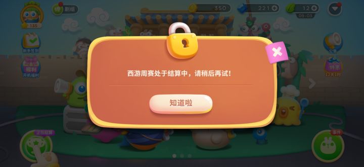 好气啊,到了周赛指引这个地方了,点“周赛”那个位置吧,就提示结算中,可是不点又玩不了了,这个指引不能跳过吗?这么强制的?现在有体力却玩不了,真的好气啊!!!!😖😤😤😤
