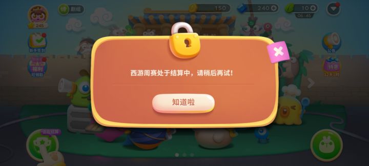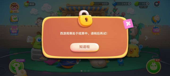 这算不算一个bug 解锁了西游周赛要引导我点 但是显示正在结算 不点这里又哪都点不了