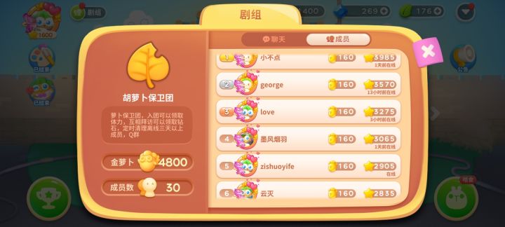 小伙伴们大家卷卷周赛~养养🐰🐰🐰~搞搞装修~攒攒叶子~工会收人~ 申请秒进~ 搜索工会名【守卫萝卜】欢迎小伙伴们一起来玩😎😎😎顺便问下新主题是提前偷跑了么?我剧组第一个居然有164个萝卜了😖😏😓