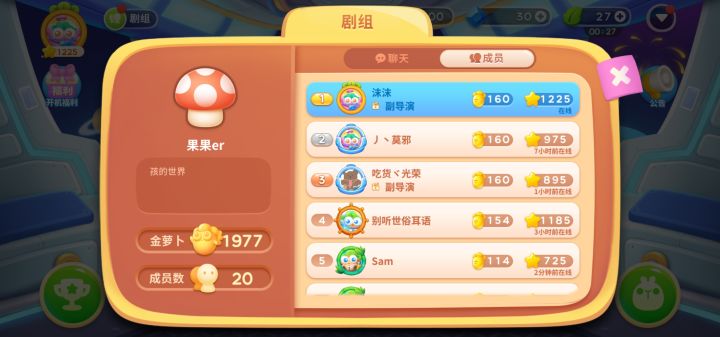 招一些互送体力的萝卜友人,休闲剧组,登录游戏时点一下剧组互助下体力就好。有没有一起的!