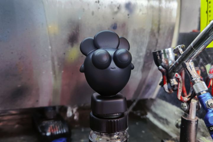 【十周年盲盒重涂】第一张图是用脱漆剂洗过的样子,第二张是喷了黑色的补土,第三张就是最终的颜色,钨钢加亚麻金的渐变哦