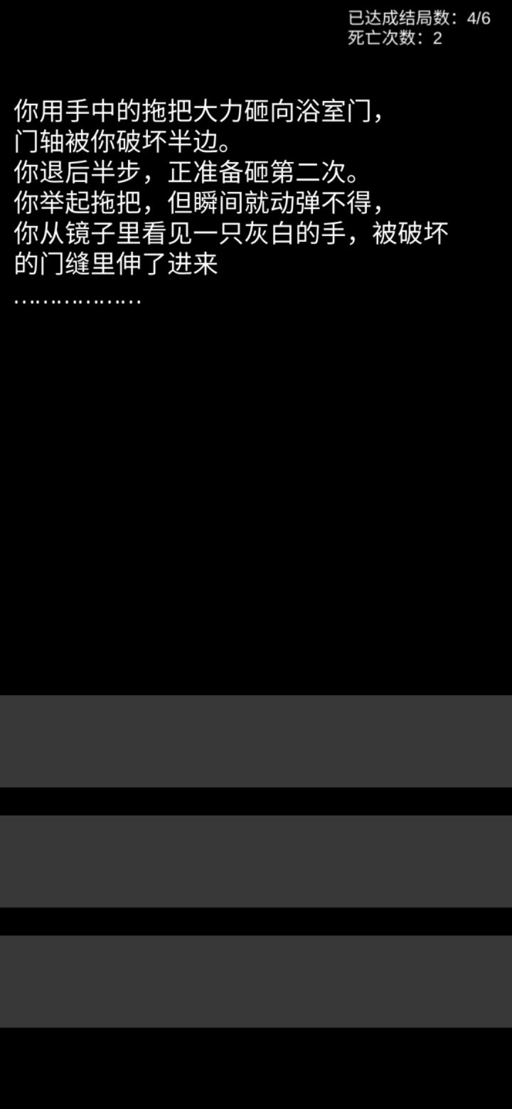 还可以吧,就是过不了关,下楼死,上楼死,睡觉死,等待死要是可以跳过文字效果可能会更好点,不恐怖