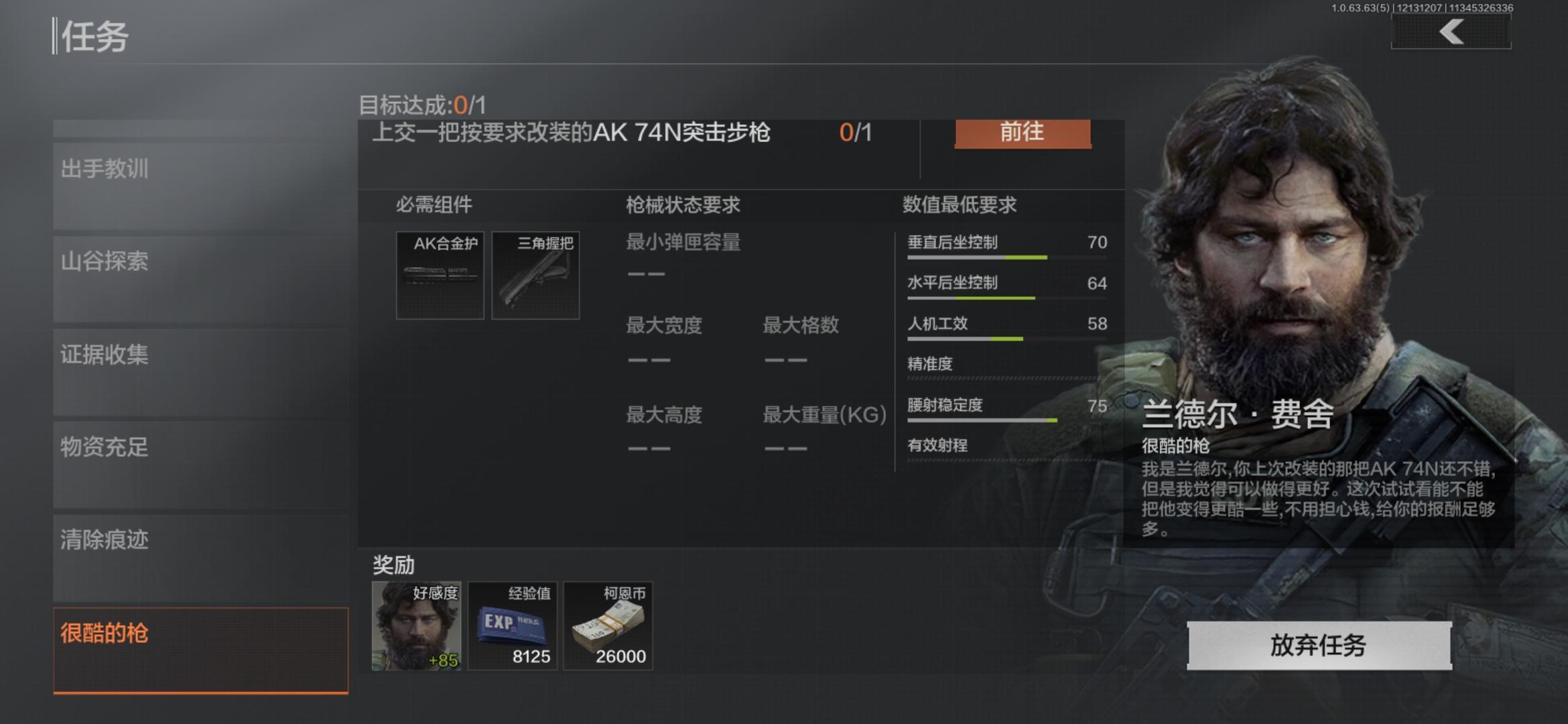 来来来,任务里说给我的报酬完全足够,我一个合金护五万多买的,你和我说完全够。抛开这个不说,我忍了。等我改装完要提交的时候更离谱的来了,我看到了数值最低要求。就这个数值要求,几乎就是满改的了,你的意思就是一把满改得枪只需要2.6万吗?我还以为是26万,结果仔细一看,我傻眼了。官方你自己去玩玩你的游戏行不行。