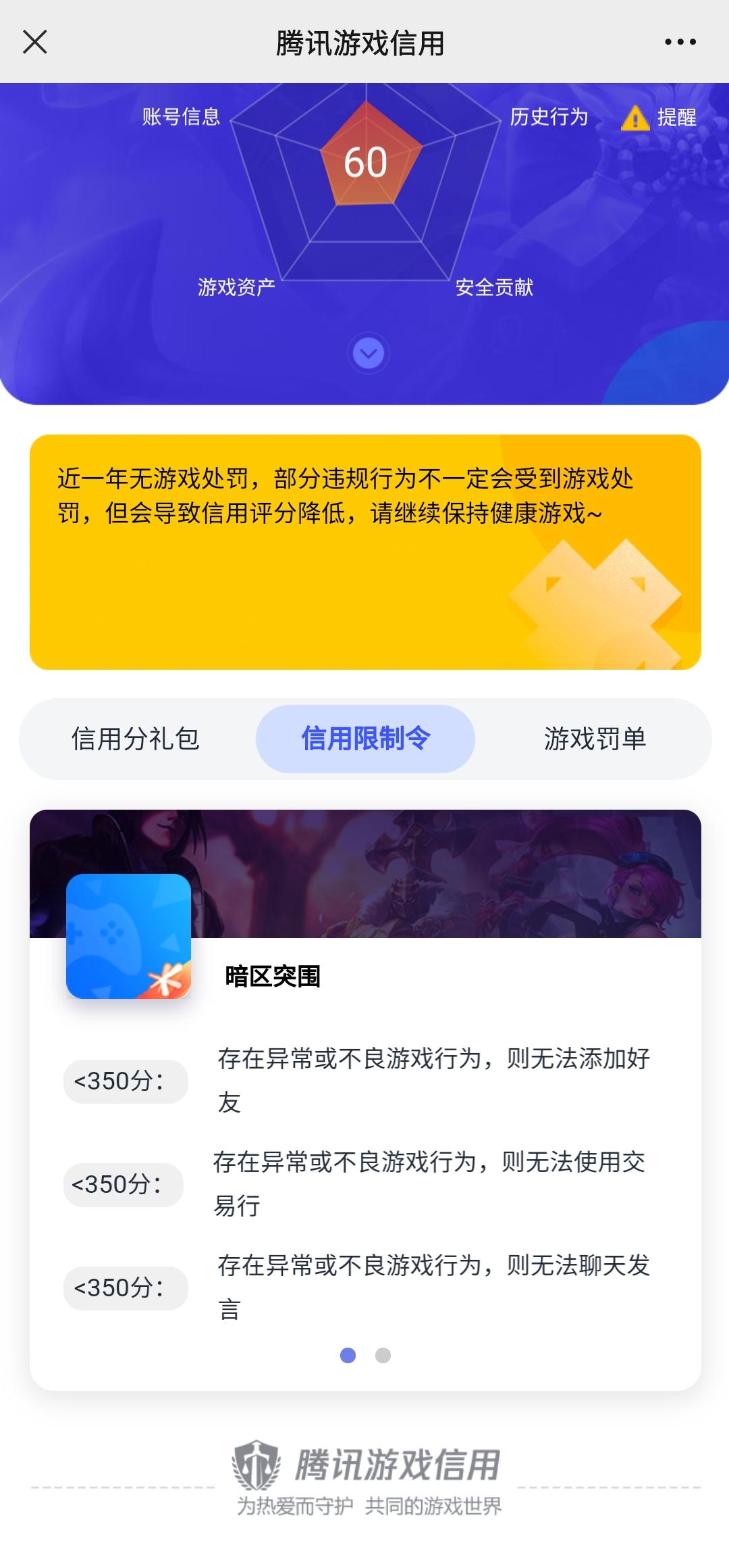 3月24日下午四点半左右我登录上号,准备出售东西时候突然提示信用分不足一百禁止出售,然后查询也没有任何违规记录,官方群反馈没有结果,群管全部不回信息,官方qq账号也不回信息,希望官方看到了赶紧给我一个答复