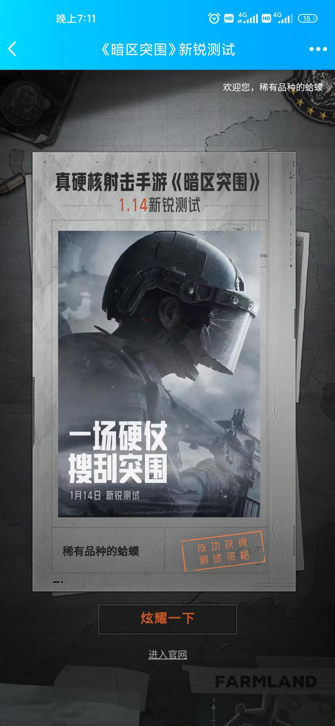 各位先锋,大家好!今天老皮给各位先锋带来一个重要情报,明天(1月11日)上午10点,官网将开启新锐测试的抢号活动,大家千万别错过哦。关于放号活动的重要规则需要先锋提前知悉,老皮也一并奉上。放号活动 规则须知1、活动开启时间:1月11日10点,活动期间每位先锋每日只有一次抽号机会;2、本次测试资格有限,每天将随机抽取部分用户获得测试资格,放完即止;3、本次测试为安卓系统测试,暂不支持iOS系