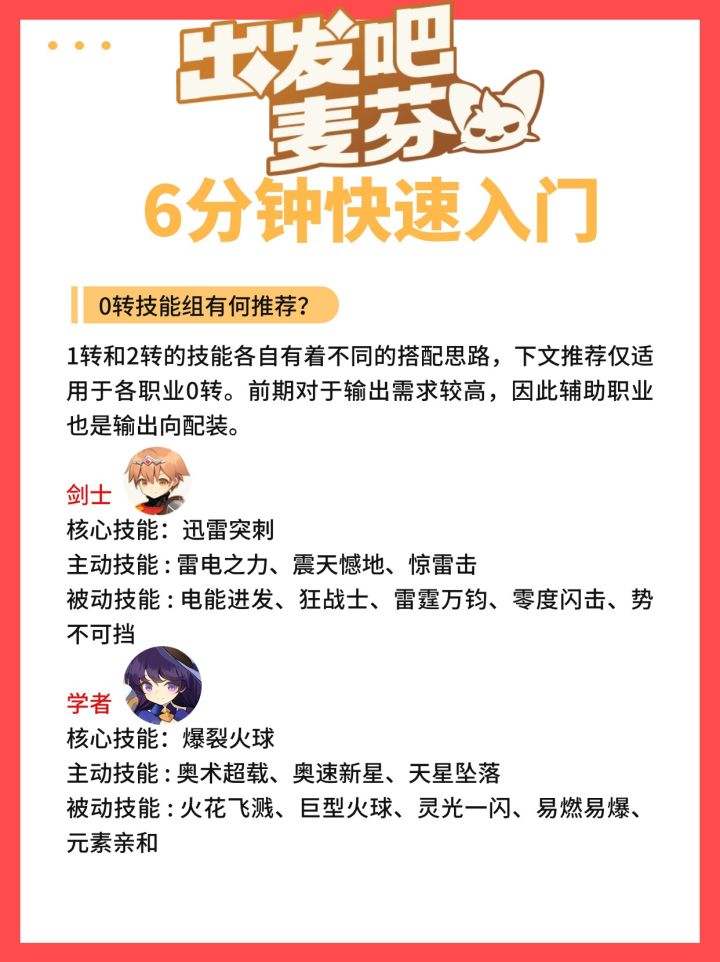 出发吧 麦芬是作为治愈系放置游戏,画风可爱治愈,支持双人同行一起冒险,离线挂机也有收益,主打一个轻松。我们总结了萌新入门时需要注意的几个要点,以及全职业0转推荐技能搭配,希望能够帮助大家~#我的麦芬攻略心得 #出发吧麦芬攻略 #游戏安利 #游戏攻略 #新手攻略 #麦芬攻略 #出发吧麦芬