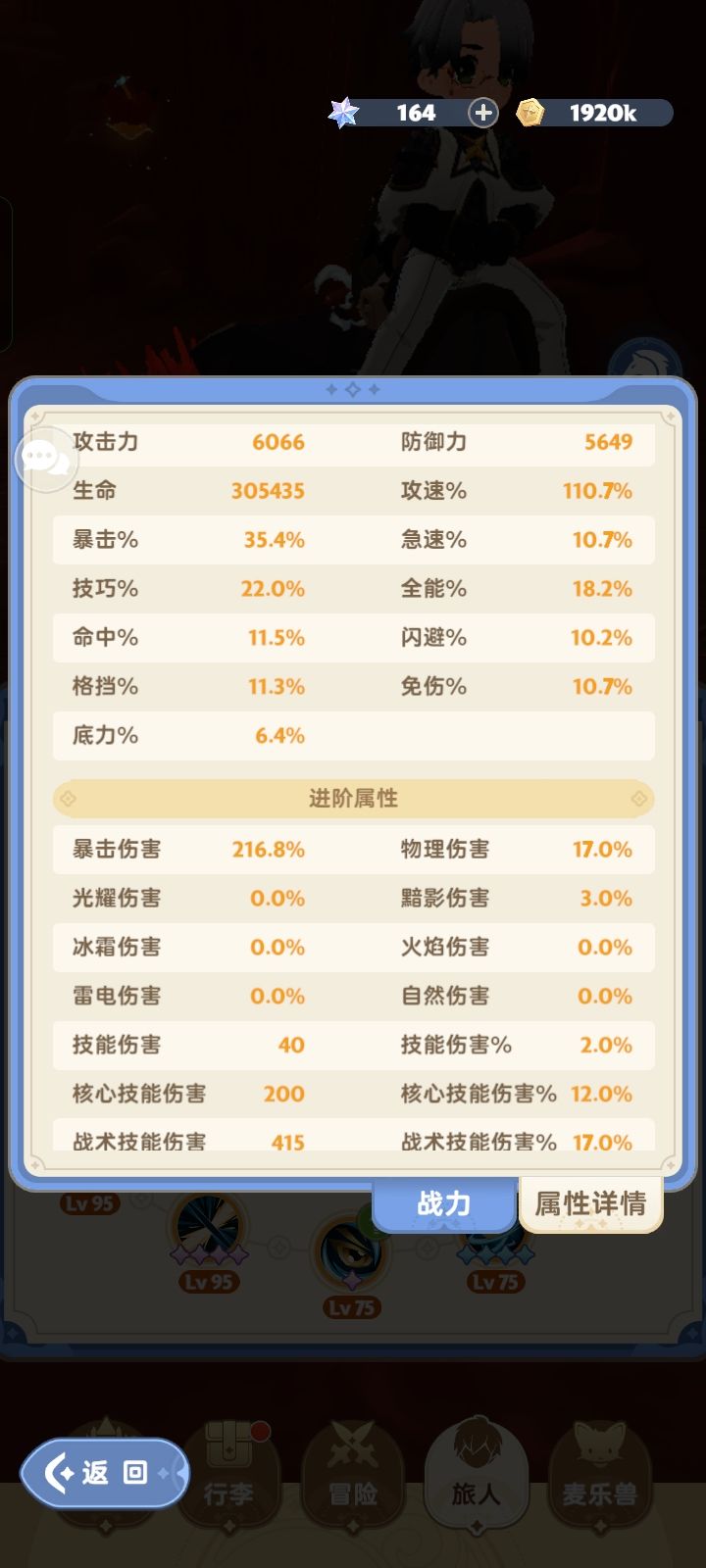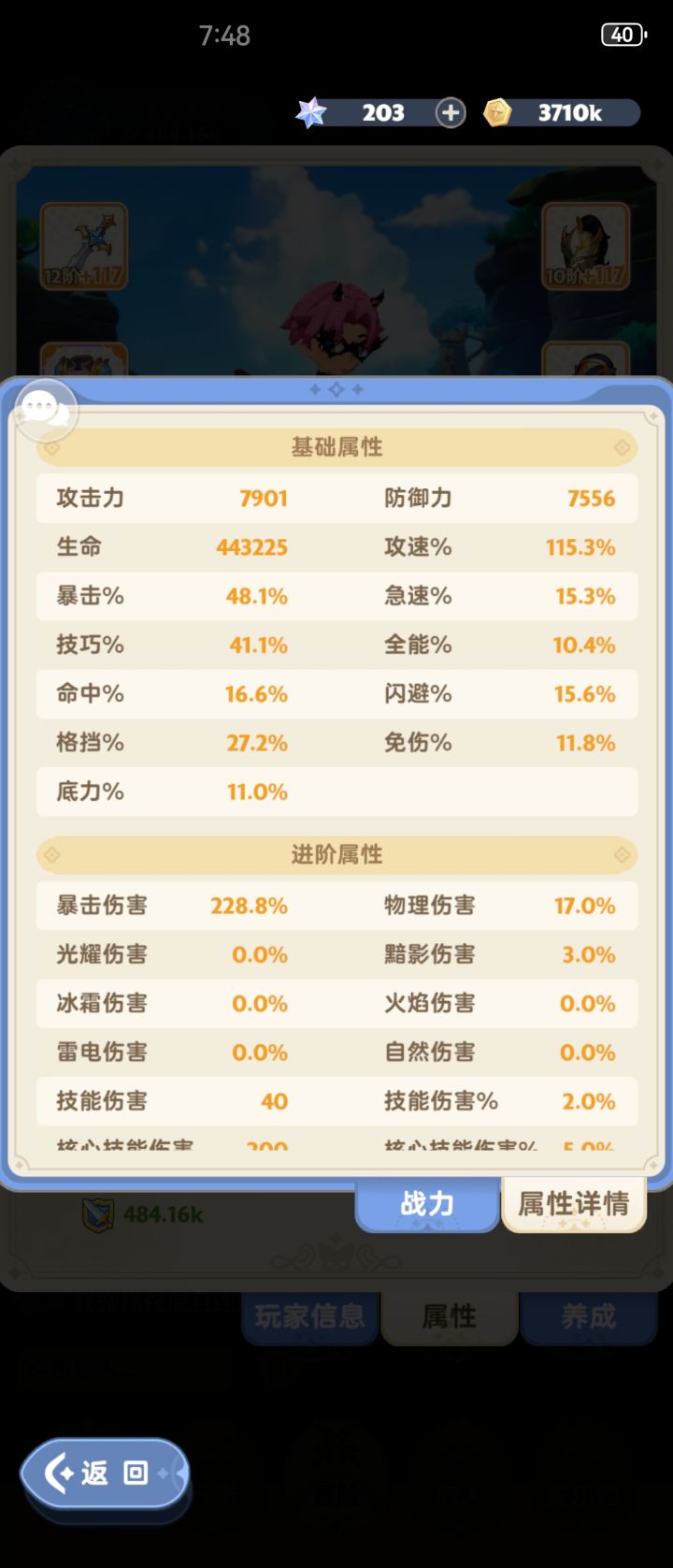 玩不懂,之前没有伤害,游戏公屏有人说堆暴击,然后把暴击堆到了45左右,但是伤害只有2.8m。然后论坛看的攻略走必暴流,堆了一些命中,有时伤害高,打本的时候稳定4m左右,这个法师500k,但伤害比我高了好多,不理解