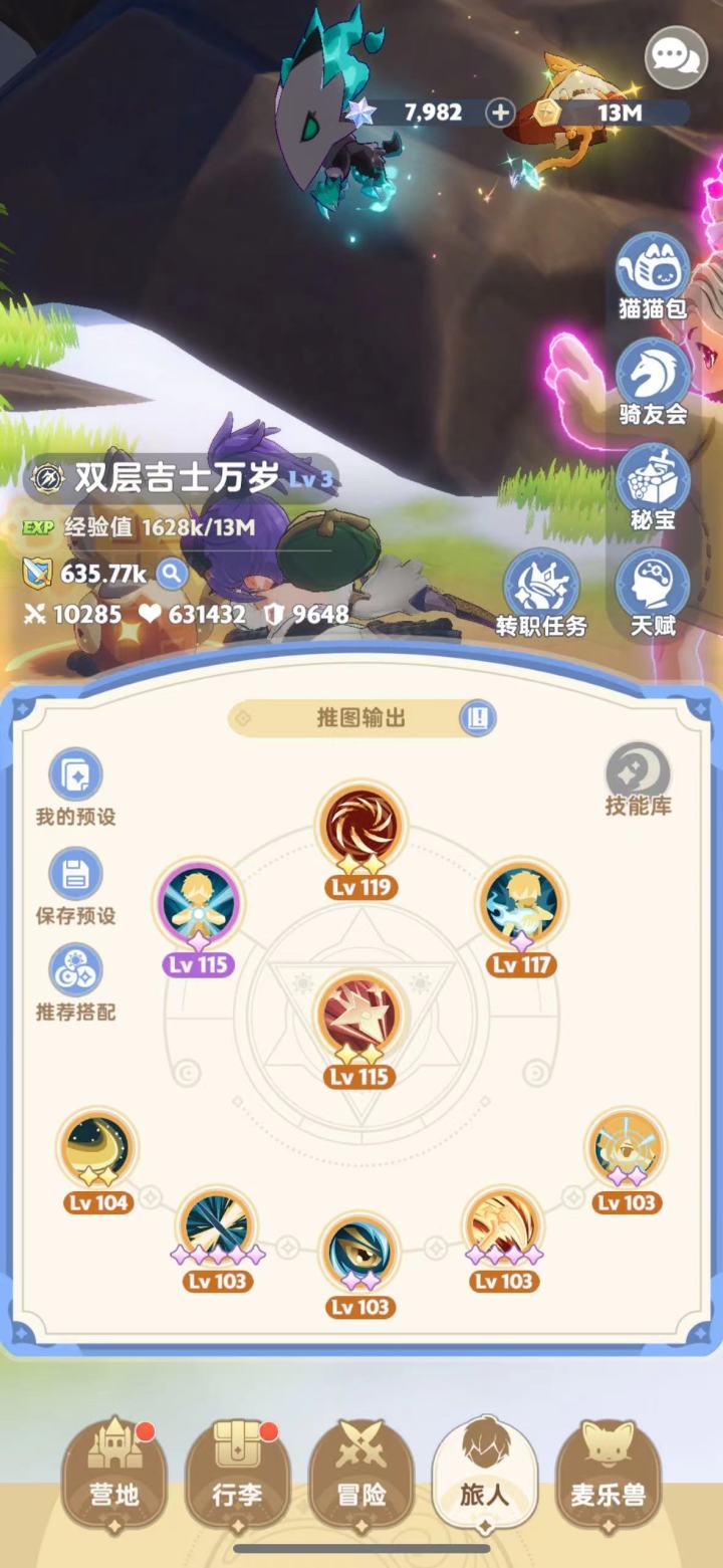 测试对象,16区1转刺客。必暴流,常态技巧35,觉醒45。宠物技能回声3,轮到4。同种技能搭配情况下。带金3魔狗狗打龙8.5m左右。带金3智谋多打龙11m左右。这还是目前刺客天赋有必暴的情况下。按照概率计算(+2觉醒技)魔狗狗加成=(技+暴-技*暴)*0.54+技*暴*1.08按照45技100暴(一转刺客天赋)理论来计算,魔狗狗的增幅应该远大于60。54+45=99%。但实战中提现持续伤害确