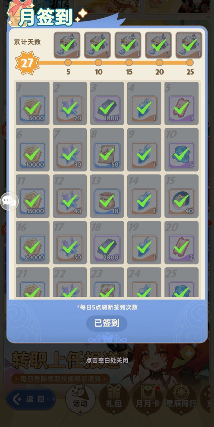 这个月签到的奖励是不是该换一下了。可以说没有哪个游戏月签到送的东西这么垃圾的。真的。30天的签到送的什么。金币,洗练石。几十钻石。一点点没用的东西。#出发吧麦芬