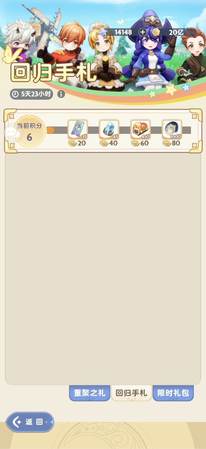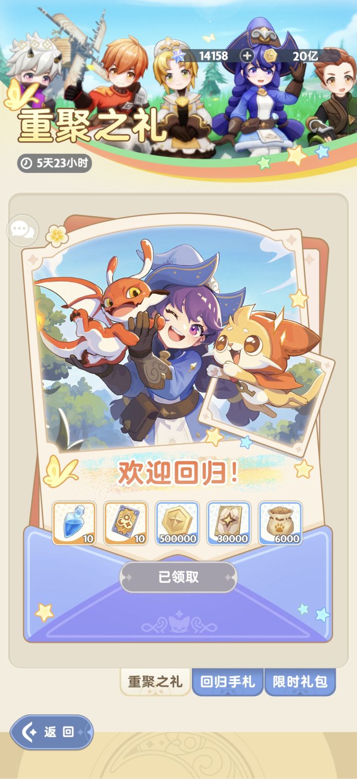 我都9转了,你回归奖励送的还是1转抽,而且回归任务呢,我俩号都没有任务好几天了,就氪金礼包做的这么完善吗
