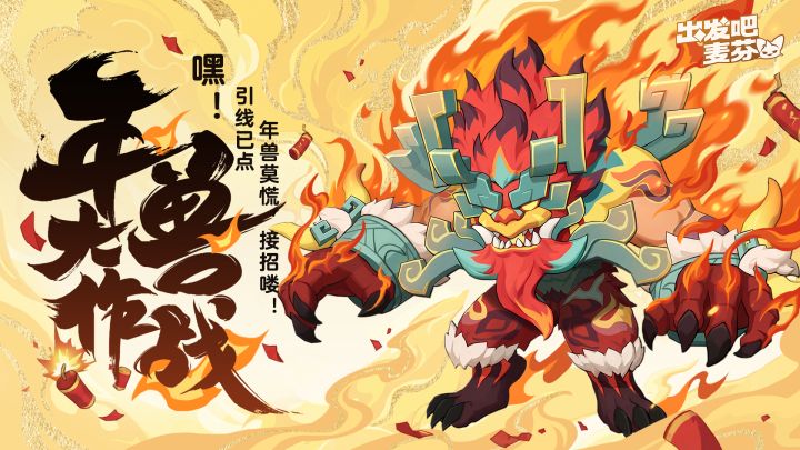 新春将至,岁兽蠢动。强敌「年夕」已然降临,亟待各位冒险家集结,协助麦芬共御强敌,驱逐年兽!在这场守岁之战中,我们将引入年兽特攻队专属道具——「鞭炮」。请冒险家在战斗中时刻关注「战术结」给出的提示,唯有巧妙利用战场道具与战术配合,方能在这场守岁之战中取得优异成绩。⏰活动时间:2026年2月16日5:00-2026年2月25日4:00参与本次年兽大作战,即可赢取包含限定【鞭炮头饰】、限定麦乐兽