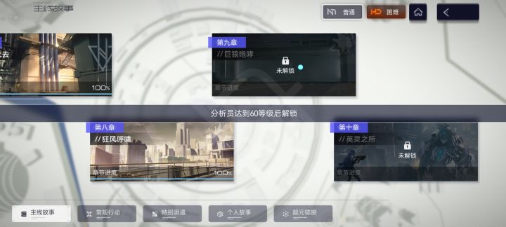 就,昨天刚上五十级,然后打完第八章,还是五十级。我想说的是,你那个限定池快结束了,你跟我说第九章要等我升到六十级。我自认为这等级限制拉得比较高了,毕竟现在我在游戏里面的好友都没有一个六十级的,最高也就一个58当然也确实是有一些零体力无等级要求的获取数据金的方法,像什么地下清理和战术考核。但都太慢了——我想说的是,为什么只有主线战斗关卡首通才会有50数据金,其余全是20。而且你地下清理,有两种,