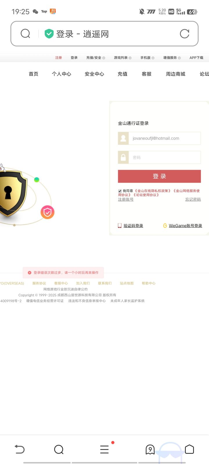 这是为啥啊 这号我游戏都能登上去 为啥西山居登不上去? 大佬求助