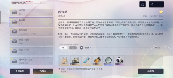 主线肝不过去了,闲着没事乱点,发现邮件这个右上角的储信终端里居然有以前活动送礼记录,这是我手机以前被人虚拟绑定用过吗?还是只是策划给萌新看看福利吸引氪金的?#尘白禁区