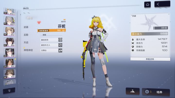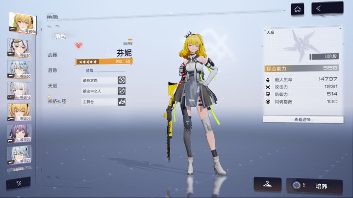 打周常发现需要两队,琴诺没有专武,保底歪狂猎的了我该练哪些角色,谢谢大佬们。