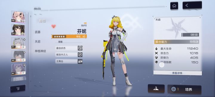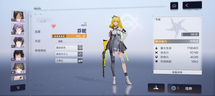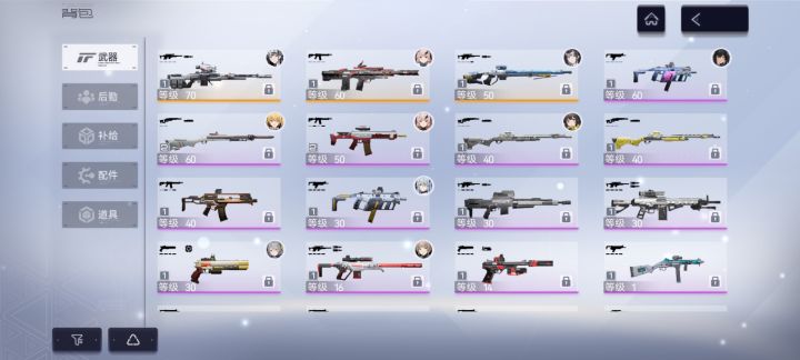 之前开服玩的,最近下回来抽到了新五星,如图是我已有的。关于抽卡,我现在是攒着还是抽武器?关于武器,我给新五星带什么?关于后勤,好多不认识了,之前刷的是狙击手的,发现我不太会用狙。现在想刷大小芬妮和新五星的后勤,刷什么?
