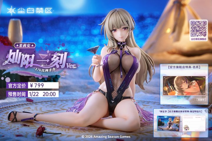 亲爱的分析员:《尘白禁区》×「MiraiMira」联合呈现「茉莉安 灿阳一刻Ver.」1/6 比例手办将于今晚20:00开启全网预订!夏夜的海滩,连风都泛着微热。玫瑰的香气在夜色中弥散,茉莉安轻轻拈起一瓣,饱含醉意的唇齿间吐露出共饮邀请。在这份心跳与香气的赏味期结束之前,请尽情品尝这一刻。 “亲爱的,再来一杯茉莉安专属特调怎么样?” 以下是雪宝为分析员整理的预订情报~【购买渠道】分析