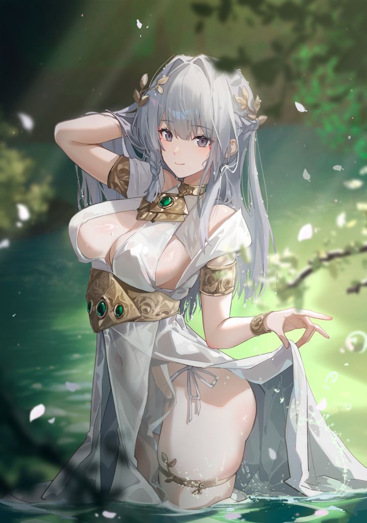 阳光穿过葱郁的森林,洒在碧绿的湖面上。少女与挚爱之人沐浴着清澈的湖水,发间缀满了盈盈的水珠,宛若湖中女神般明媚动人。“特别的一天,我也希望给郎君看看特别的一面~”“如此良辰美景,和郎君相约于此……倒是别有一番滋味。”“只愿时光能在此刻停留,与郎君多些这般惬意的时光。”感谢画师创作的生日贺图!官方Q群:868421507