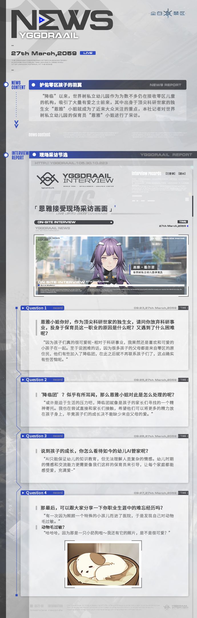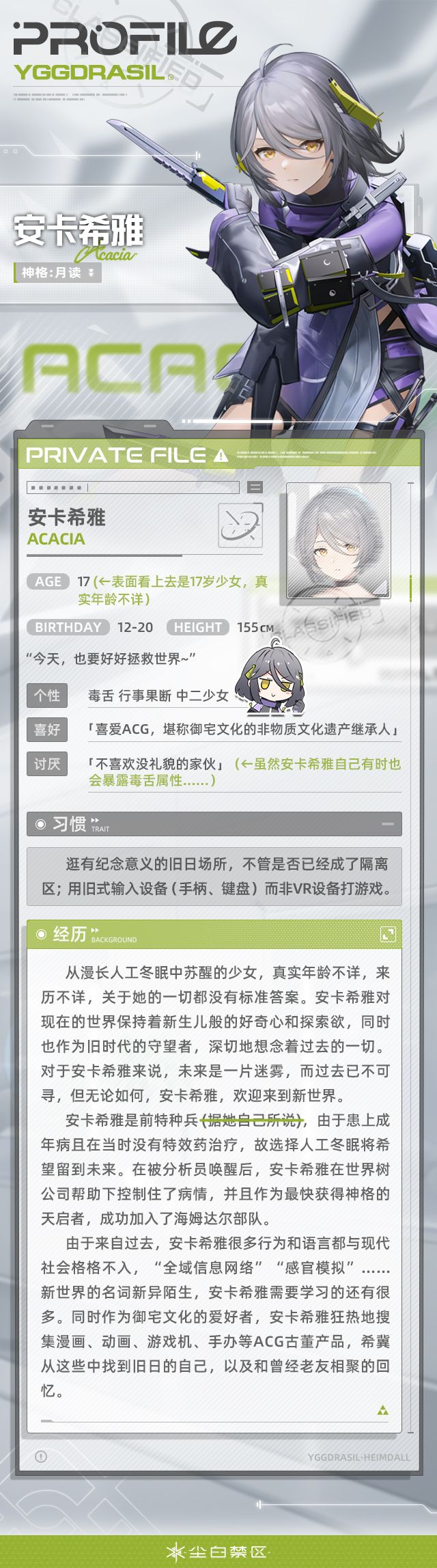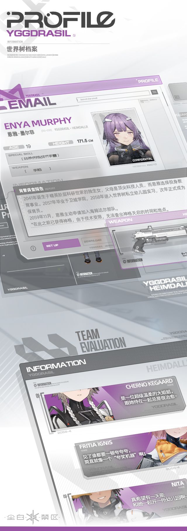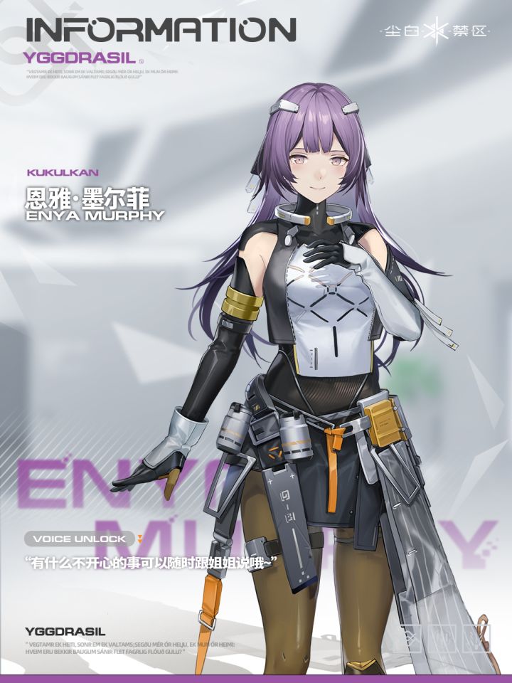 恩雅诞生于一个精英阶层科研世家,优渥而和谐的家庭环境使得恩雅并没有经历过太多的伤痛——这在海姆达尔的成员之中堪称罕见。