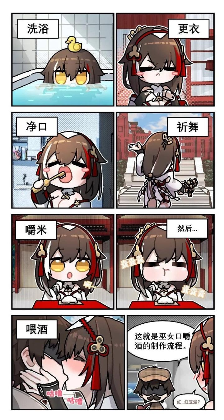 “元旦节快到了,分析员想要点什么呢?”一天晚上,在房间里,晴问。“巫女口嚼酒。”分析员一只手伸出一个手指,另一只手背在身后,但是视线偏向了另外的一边,并没有看着晴,似乎心里在想着什么,而且是关于这个问题的事情。“那该怎么做呢?”晴继续问。“你先穿上这身衣服。”分析员另外的一只手拿出一套巫女服,那被衣架挂着的,甚至有着小的装饰品,他偷偷瞄过来,又快速地转向另一旁。晴接过衣服,当着分析员的面换