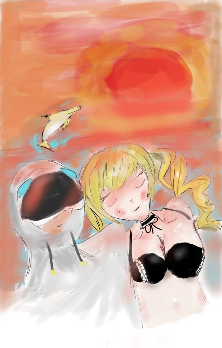 雅卢岛,落日,与被称作黄金狮子的少女手机指绘画的有点抽象了,见谅