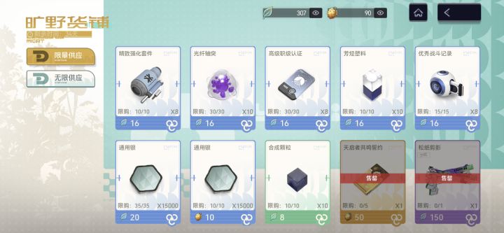 全勤分析员一句话省流版:限量供应全部搬空以下面向非全勤分析员限量商店具体分析:首先如图把天启者共鸣誓约(抽卡券)5张换了。然后升角色缺什么优先换什么。比如抽了卜卜但不抽专武那武器松纸剪影要换,角色和武器升级过程缺东西了优先换。第二档为橙色物品,较难获取,都建议优先。第三档为永远缺的芳烃塑料(蓝色方块),光纤轴突(紫球,日常做直播激励的可以不优先),都可少量屯点。第四档为各类资源(去除职级认