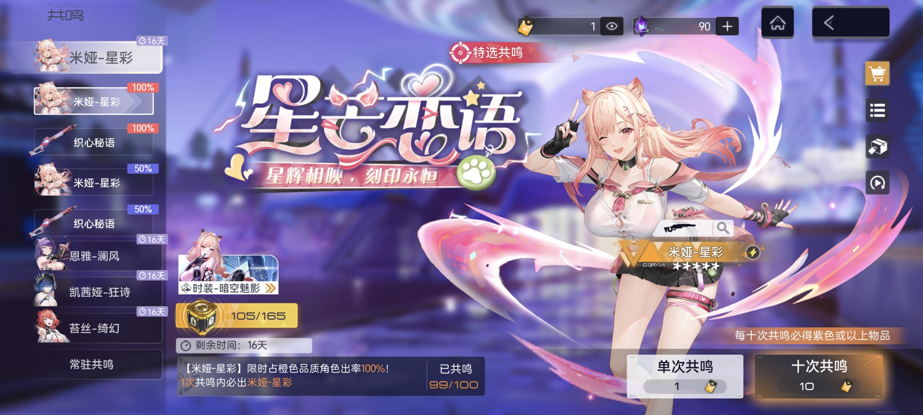 小登欧爆了,本来打算保底捞的,不歪池一发十连出来了,随机箱前面九十抽是抽狂诗的,随机箱现在就一百抽,有点想补个专武给米娅了