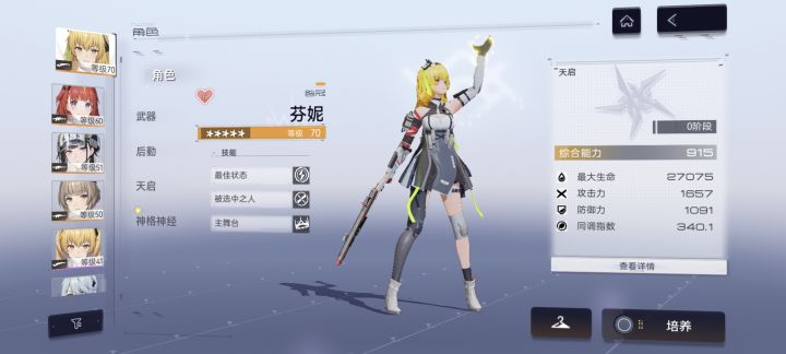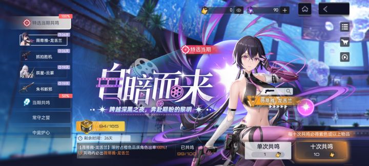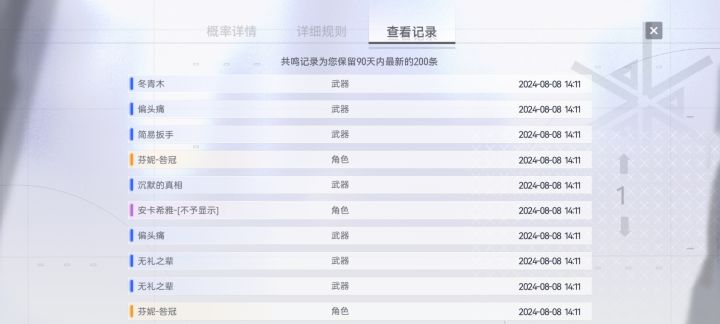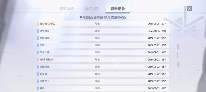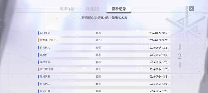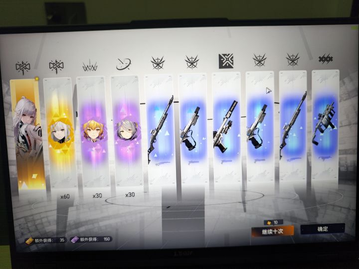 今天晚上更新完领了邮箱,50%池39抽直接出了想起自己开服,安卡希雅和专武都是十几抽,新手池出了芬妮和里芙两个金,自选冬至,但是自己太菜了打不过困难,玩了一个月就退坑了。后来1.5被官方的凯茜娅位移机制拉回坑,抽武器歪了星辰大海,正好补了藏锋。当时记得就是差4个角色,现在居然还是。只给尘白氪过几个皮肤,但现在已经很久没氪金了,居然还对我这么好米家三个游戏我都有玩,