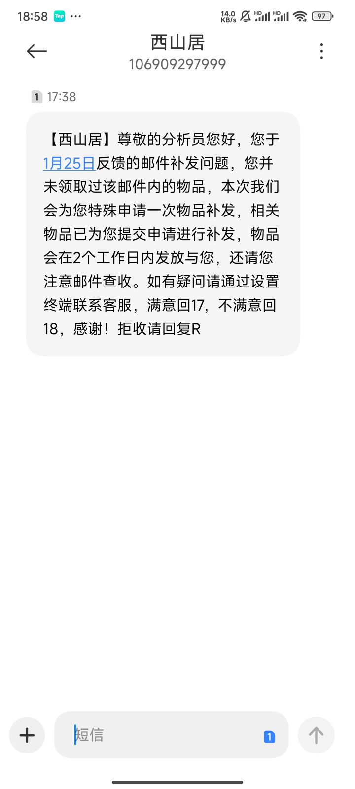 开服玩家,一天退游,刚回坑,看见论坛有人说可以补领,马上申请,成功了,心情高兴,皮肤拿下。#尘白禁区
