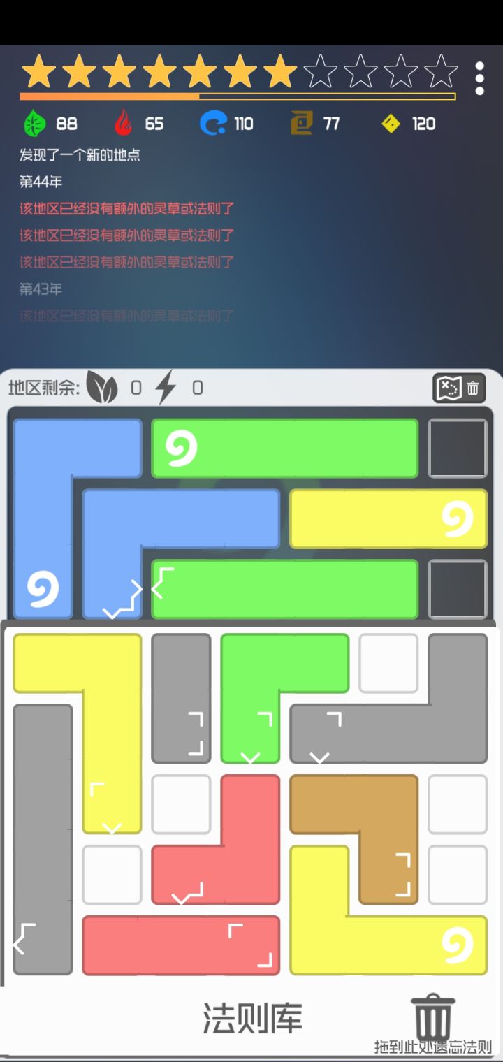 建议把掉落的法则直接用灵草对应的颜色代替,而非颜色代表稀有度,同时后面也获得一个小按钮,设置删除不想要的颜色的法则,毕竟小提示也说了,并不是越稀有的法则越好,可以像自动下落一样多看点广告获取此功能,同时也能减少很多无用点击另外,点击后的延迟建议取消或者缩短,很影响体验