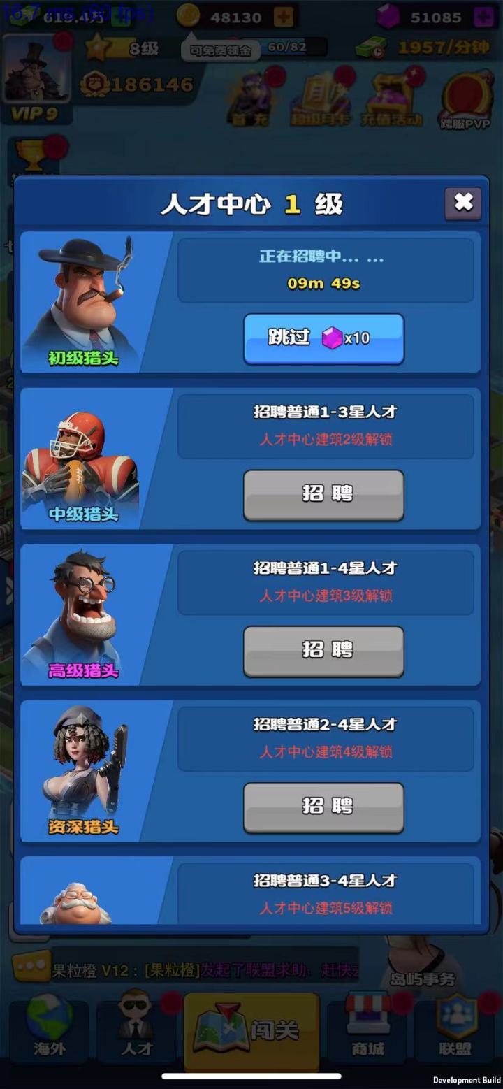 《超凡勇士》中的人才市场是除了商城招募以外也可以获取人才的途径~各位BOSS通过主线和其他途径获取人脉值后,就可以在人才中心进行人才招募,不需要消耗钻石。随着人才中心等级的提高,招募到人才的质量也会越来越好~人才中心满级后,竟然每次都是保底SR人才,大概率获得SSR人才~升级人才中心需要的“市政扩建卡”可以通过主线闯关或商城购买~缺少人才的BOSS们不妨试一试哦~